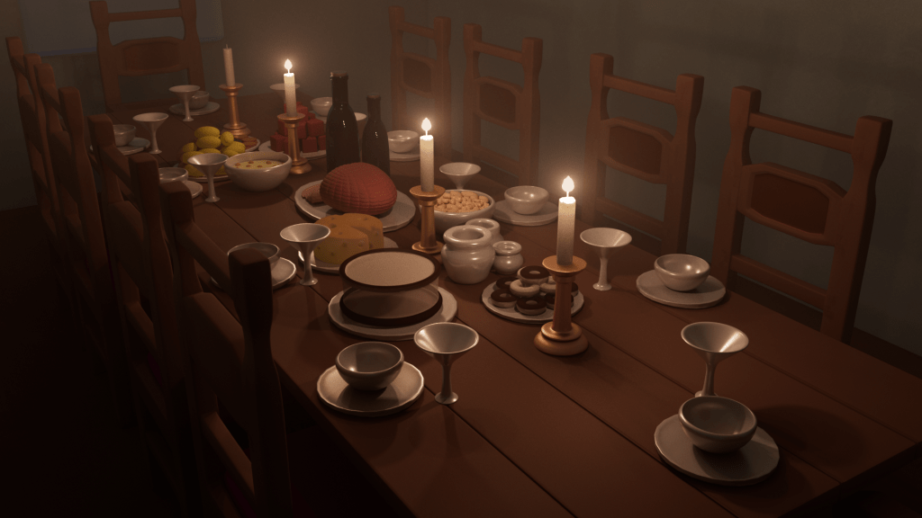 The Feast is a project that I made in my sophomore year of high school. All assets seen were modeled and surfaced in Maya 2022. It was a personal project and test of my skills at the time that took over 72 hours to render.